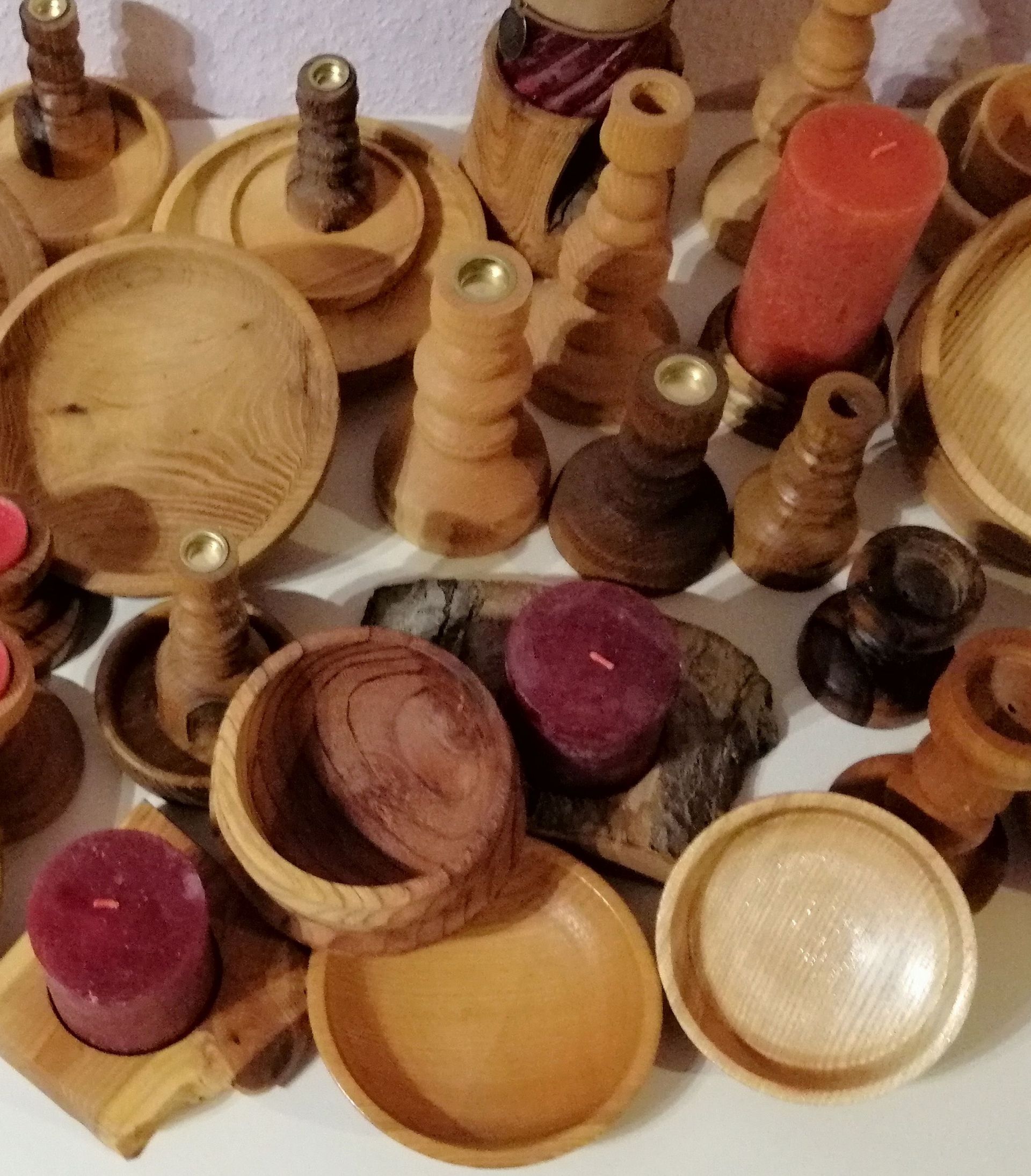 Aus schönen Hölzern, die nicht zum Bogenbau geeignet sind, entstehen schöne Schüsselchen und Kerzenständer !